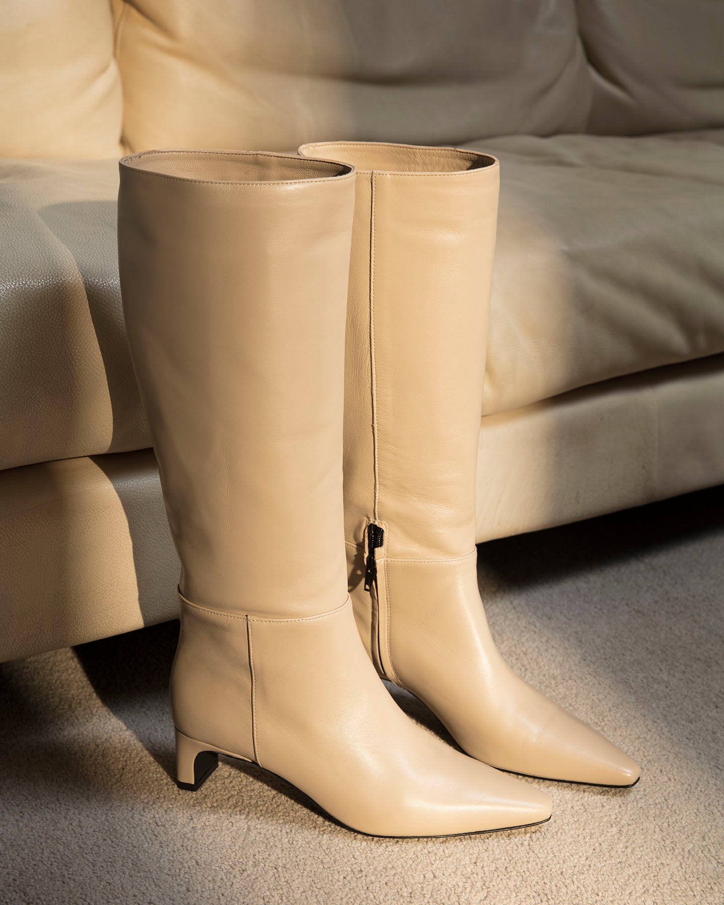 Discover timeless elegance and everyday comfort with our women's knee-high boots, handcrafted in Italy from premium genuine nappa leather. These soft leather boots feature a sleek, squared-off pointed toe and a wide, low 4.5cm heel—perfect for all-day wear without sacrificing style. A full side zipper offers easy on-and-off access, while the supple nappa leather molds beautifully to your leg for a flattering, tailored fit.