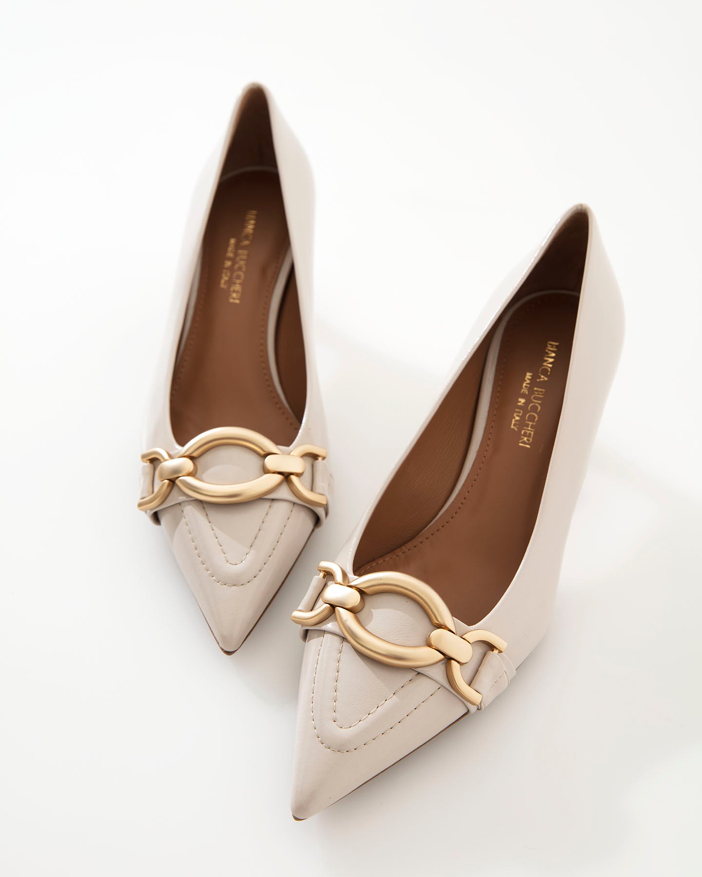 Bianca Buccheri Eli Milk pump featuring a matte gold buckle. Genuine leather. Made in Italy.