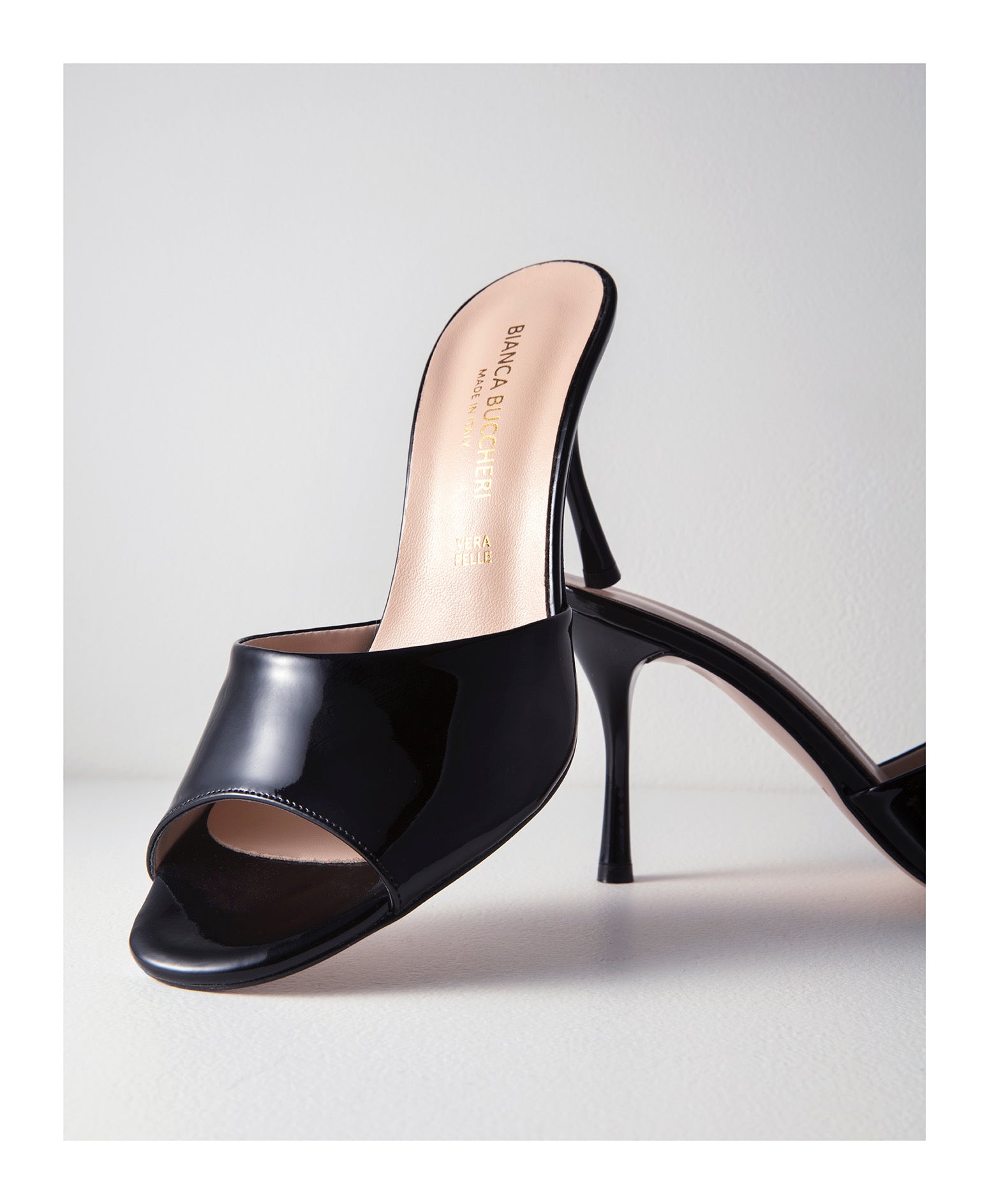 Step confidently with the Bianca Buccheri Kate Black patent leather sandal, featuring an elegant 8.5cm heel that balances style and comfort. Crafted from glossy patent leather, this sandal offers a sleek, sophisticated look perfect for both formal occasions and refined everyday wear. The heel height enhances posture and adds a graceful silhouette, making it a versatile addition to any expert wardrobe.