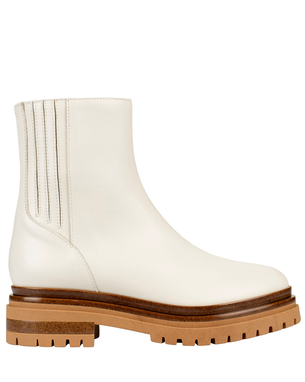 Designed with a rounded toe for a classic look, the Laria features an exposed chunky sole that adds a bold and contemporary edge to its aesthetic. This distinctive sole not only provides traction and support but also enhances the rugged appeal of the boot, making it a versatile choice for any occasion. Equipped with a side zip, the Laria ensures a secure and comfortable fit with ease of wear.