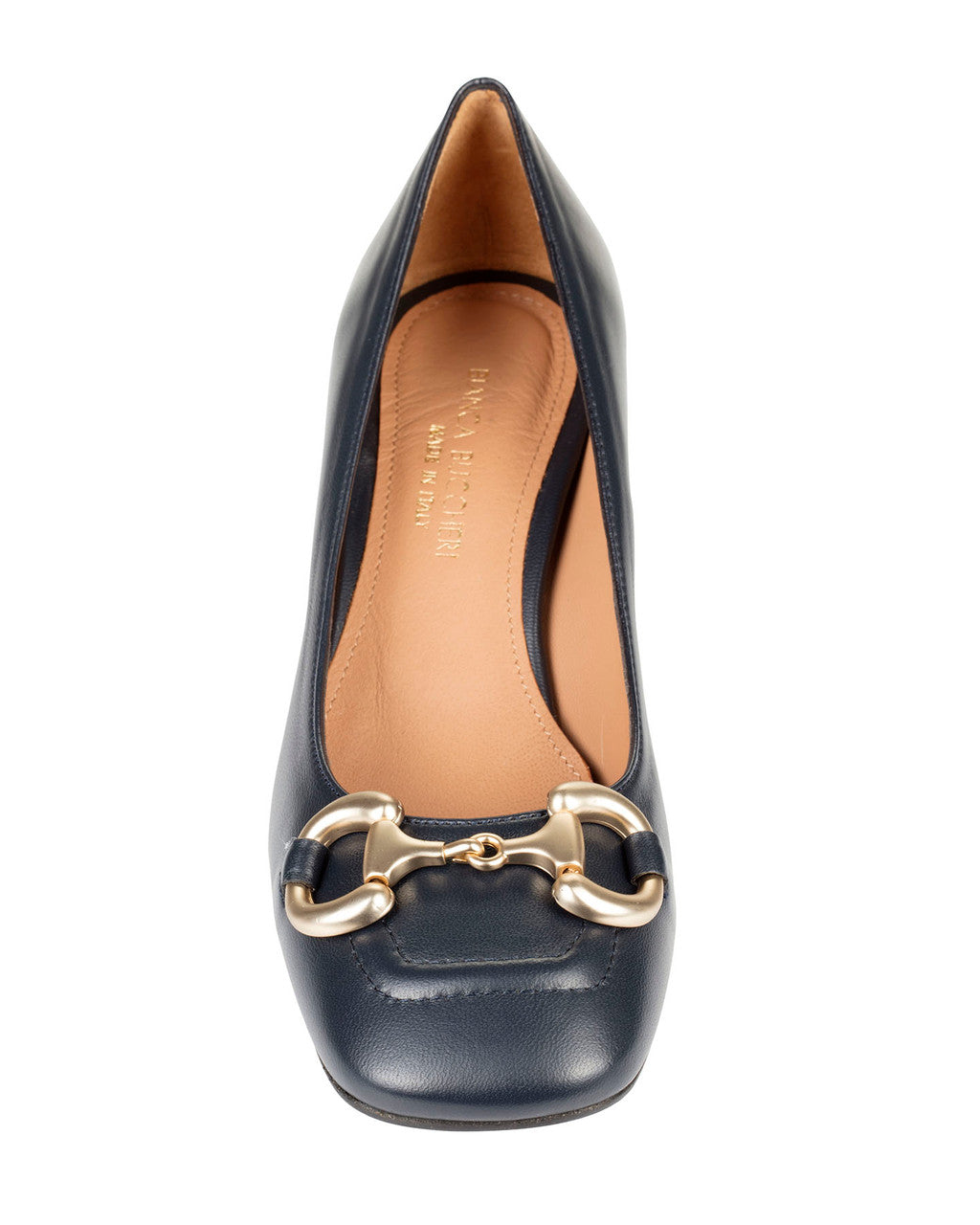 Bianca Buccheri Olla Pump. Crafted from sumptuous Verlux leather, the Olla pump boasts an exquisite texture and a rich, luxurious feel. The soft varnished leather not only ensures a comfortable fit but also enhances durability, allowing for longer wear and easier cleaning. These pumps are as practical as they are stylish, making them an essential addition to your wardrobe. Designed with a low block heel, the Olla ensures all-day comfort without compromising on style. The heel provides a stable foundation, making these pumps perfect for a variety of occasions, from professional settings to social events.Made in Italy.Heel height approx 6cm. 100% genuine leather.