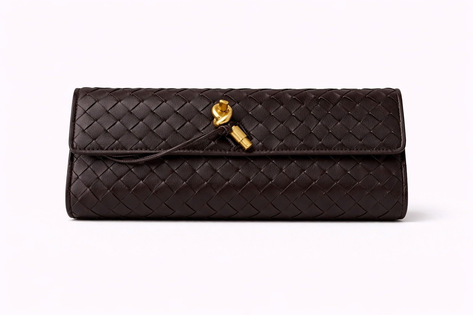 Handcrafted in Italy from luxurious genuine leather, the Square Long Weave Clutch embodies understated elegance. Its elongated woven design showcases refined artisanal detail, while the structured silhouette offers a sleek, modern finish.